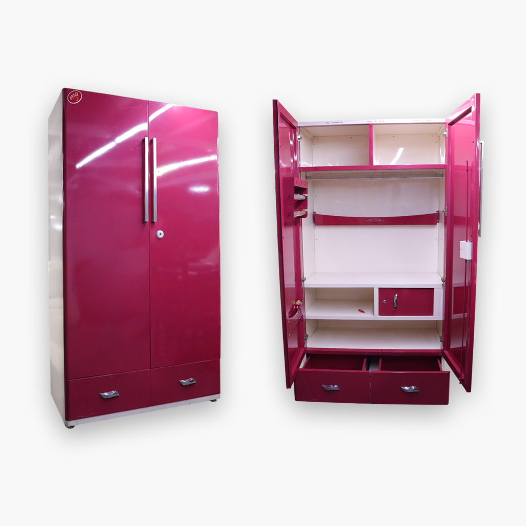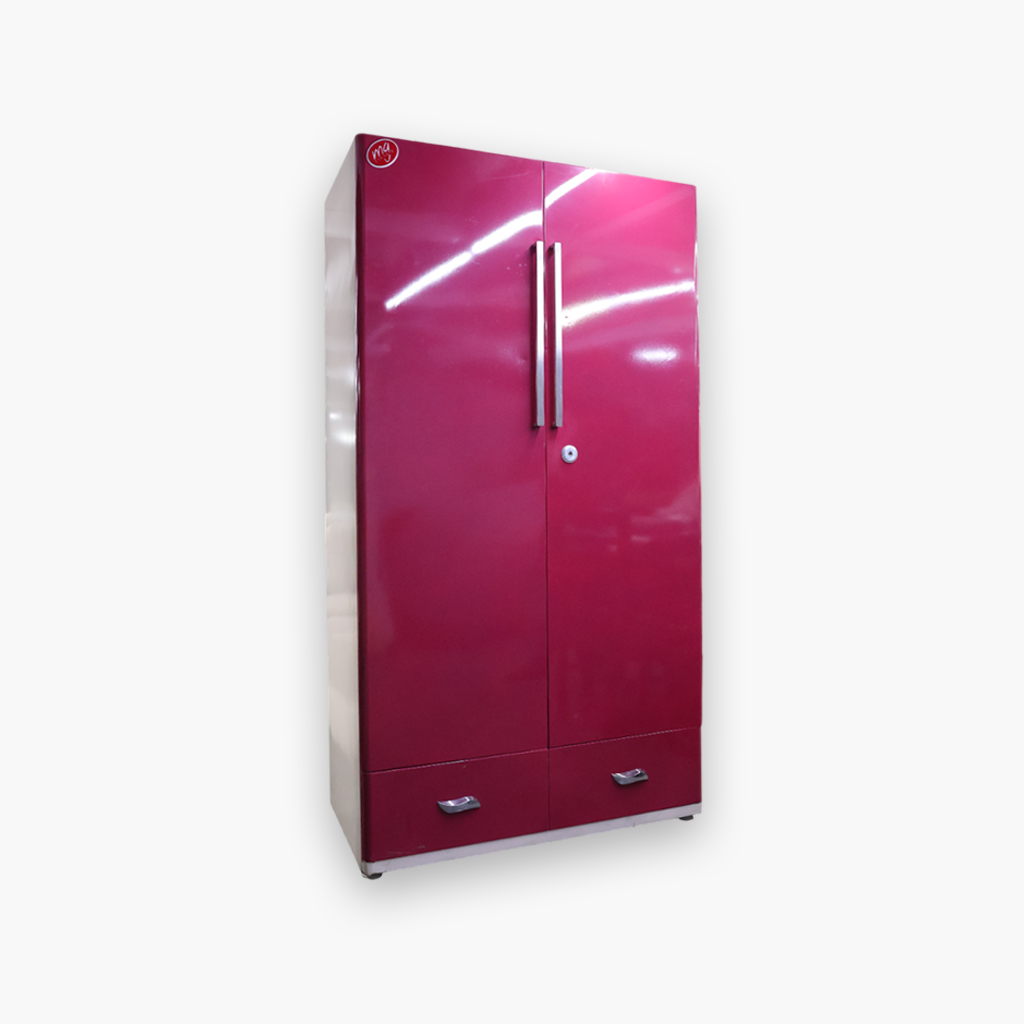 Add vibrant style and spacious storage to your home with this Premium Pink Steel Almirah. Designed with a glossy finish and modern long handles, it offers both beauty and durability. The smart interior layout includes shelves, hangers, a secure locker, and dual bottom drawers—making it perfect for organizing all your essentials.